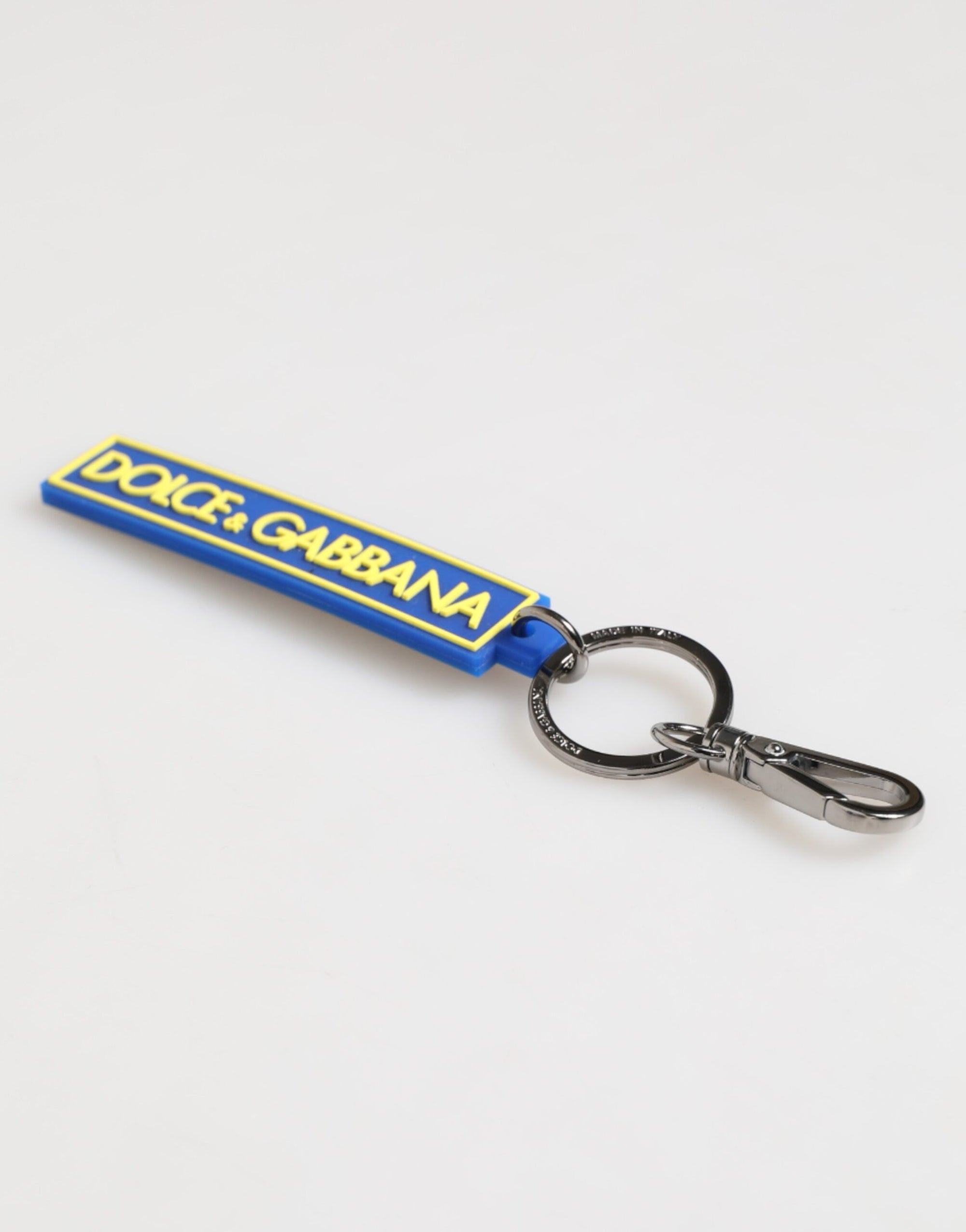 Dolce & Gabbana Blue Yellow DG Rubber Logo Silver Men's Holder Keyring -