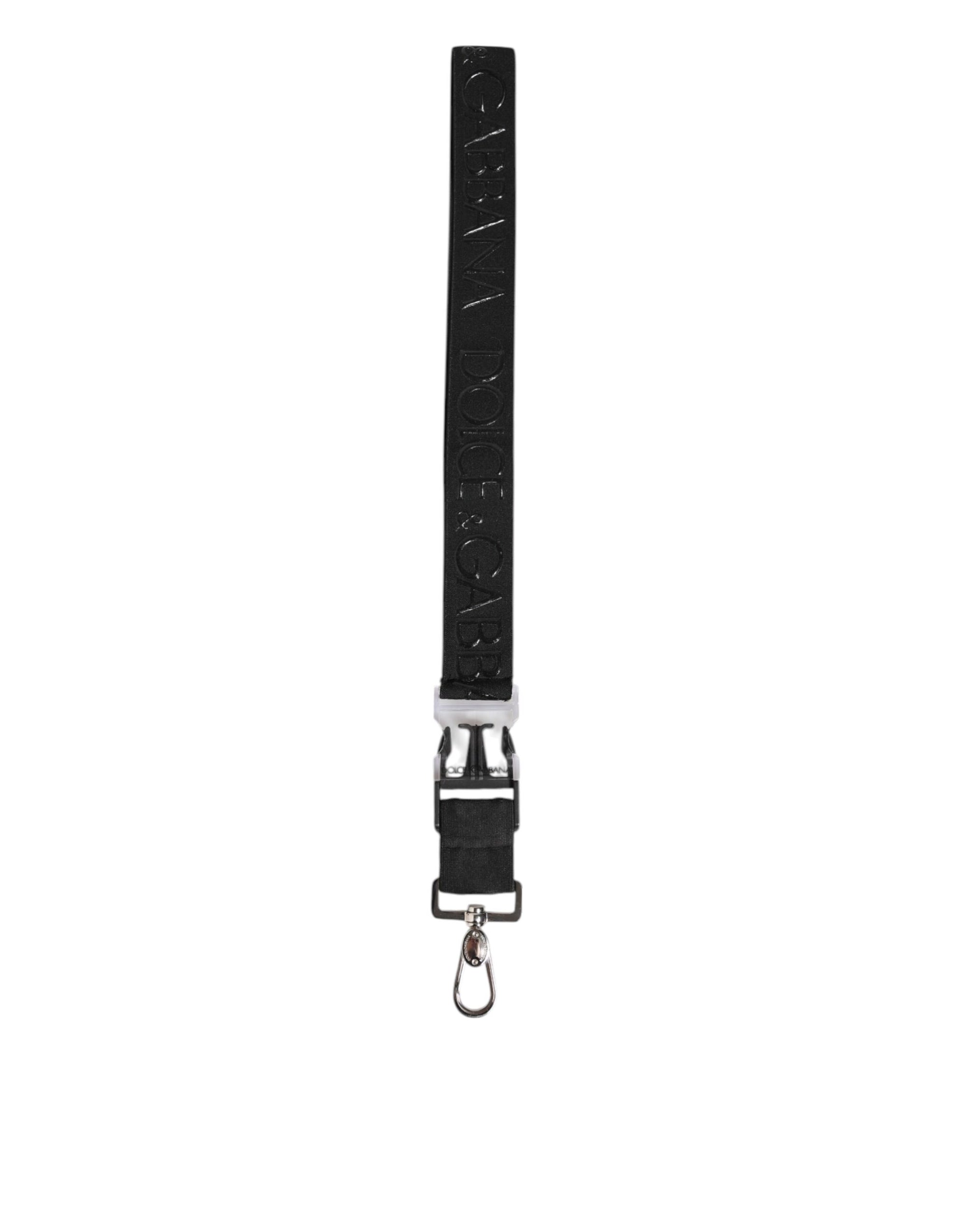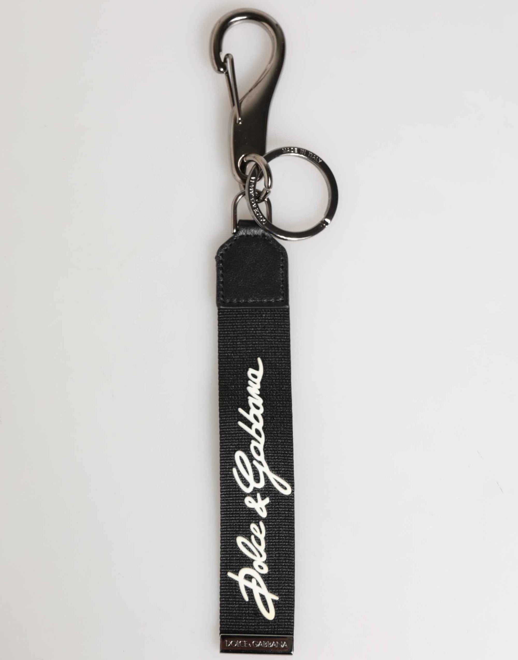 Dolce & Gabbana Black White Polyester DG Logo Silver Men Keychain Keyring -