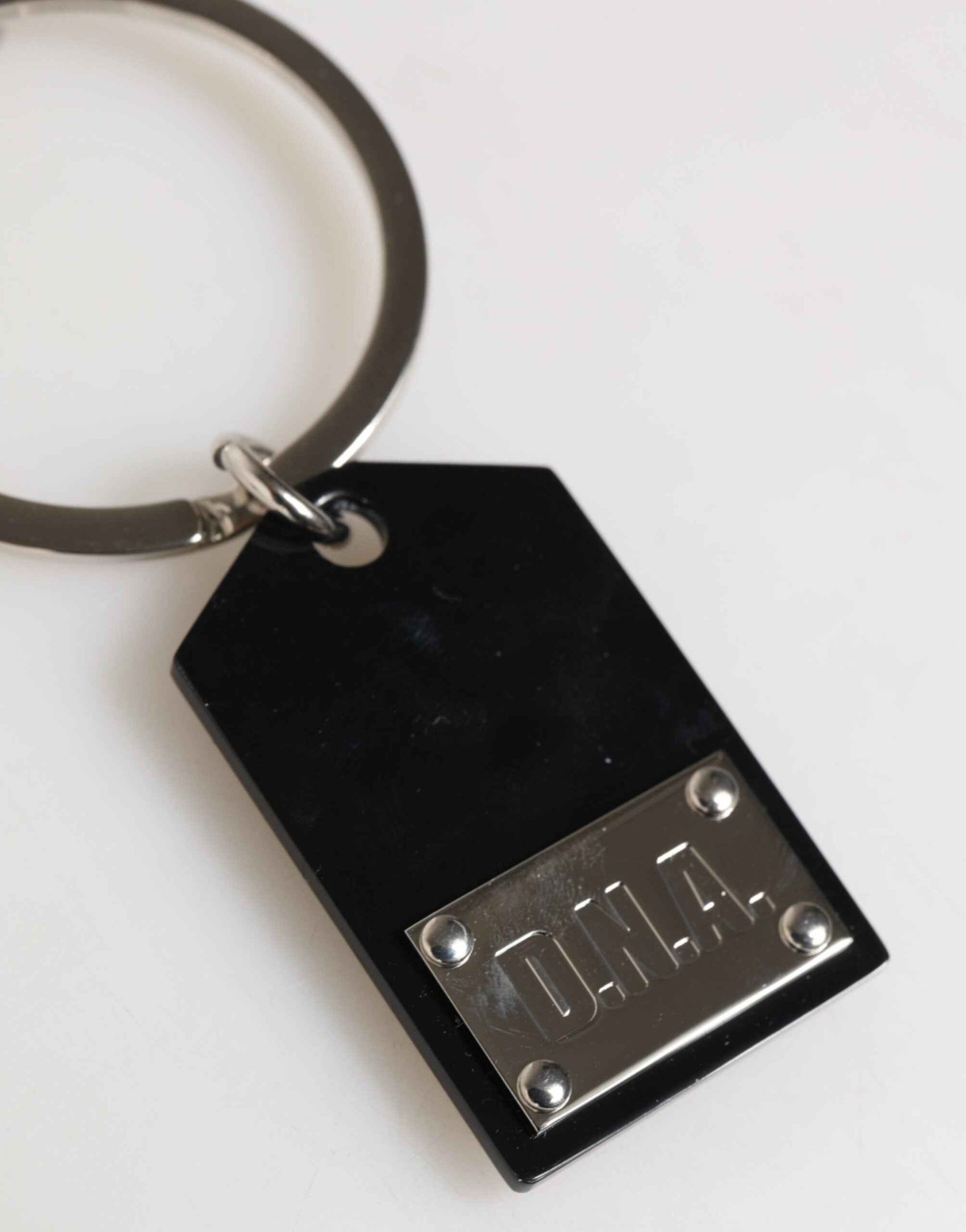 Dolce & Gabbana Black Sint Glass Plaque DG Logo Metal PlateKeychain Keyring -
