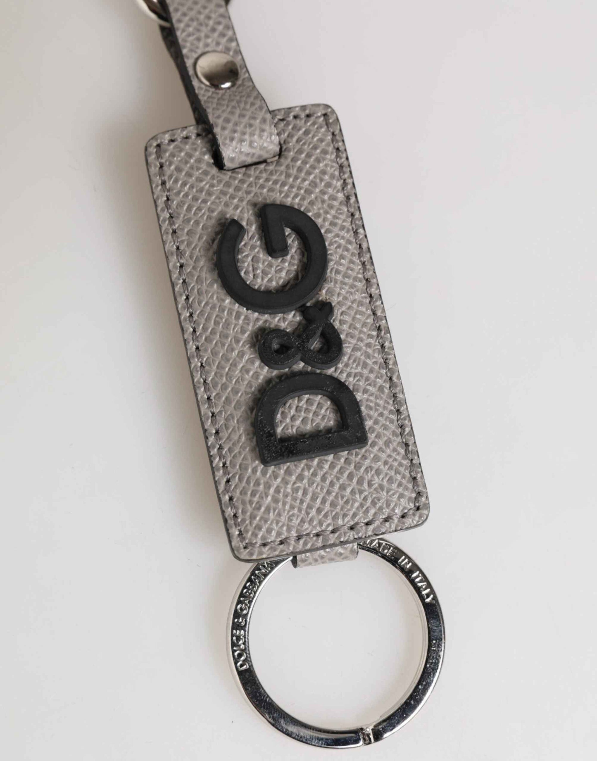Dolce & Gabbana Gray Leather Logo Metal Ring Keychain Holder Keyring -