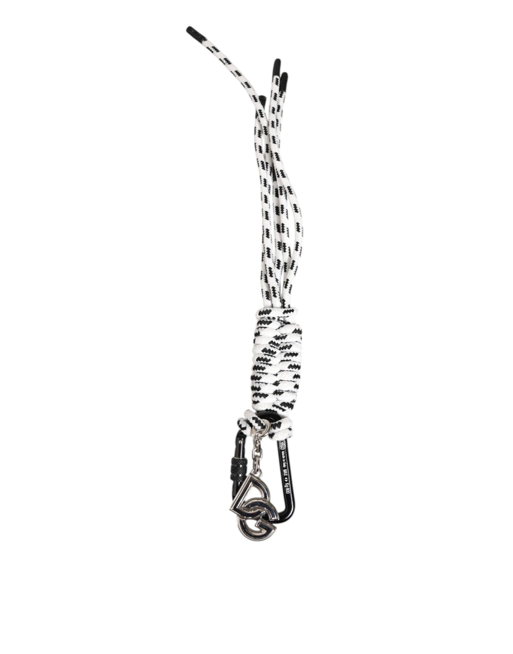 Dolce & Gabbana Black White Polyester Tape String DG Logo Keychain Keyring -