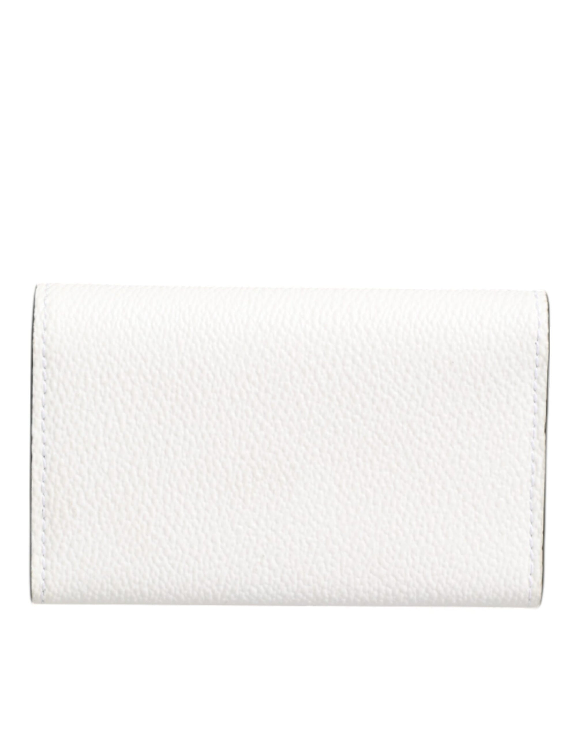 Dolce & Gabbana White Leather Card Case Holder Wallet Gold Logo Plate Key Holder -