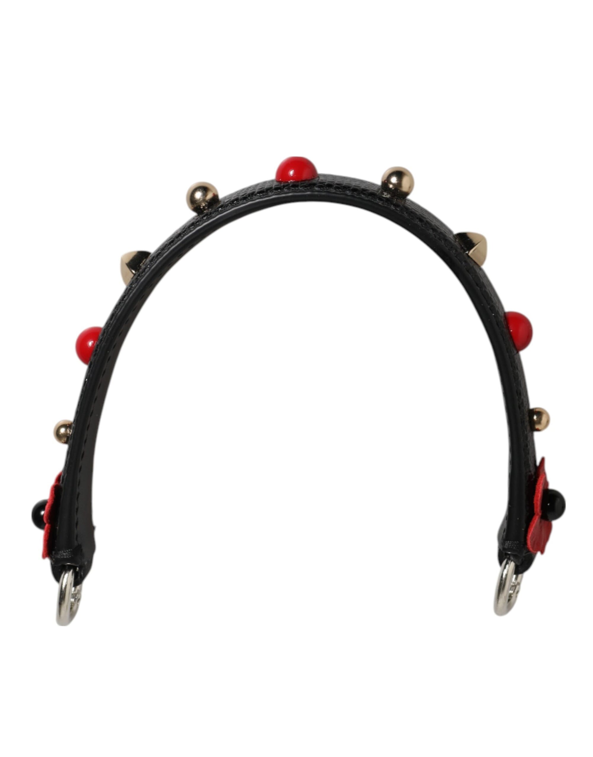 Dolce & Gabbana Black Embellished Leather Bag Handle Women Shoulder Strap -