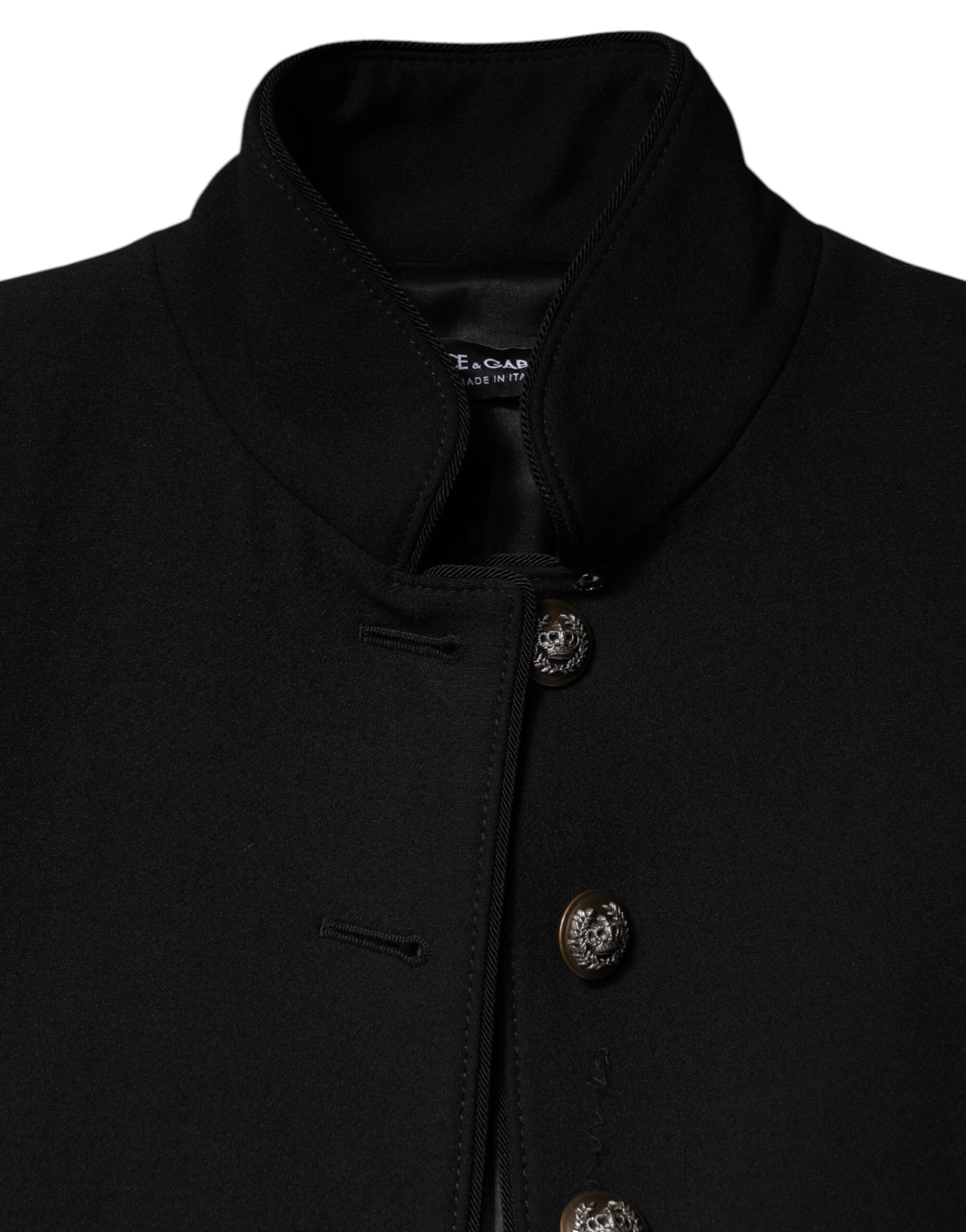 Dolce & Gabbana Black Floral Wool Button Embellished Jacket -