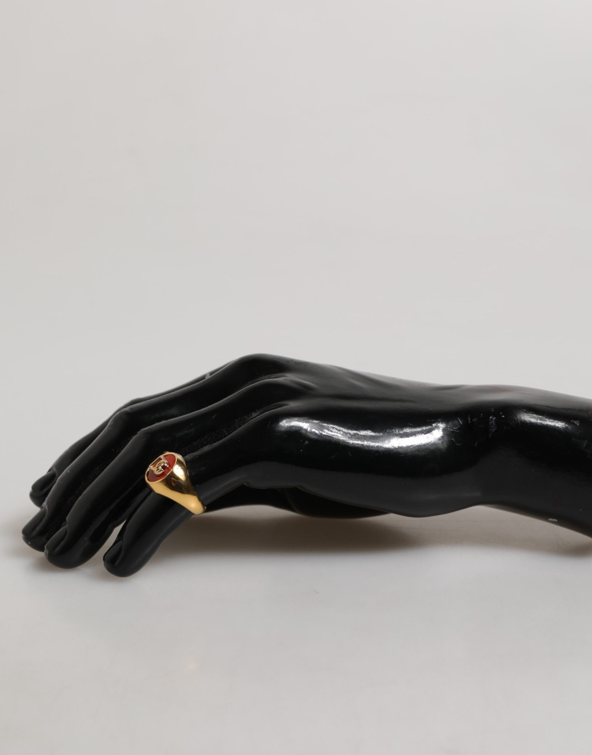 Dolce & Gabbana Gold Tone Real Brass Red DG Logo Men Ring -