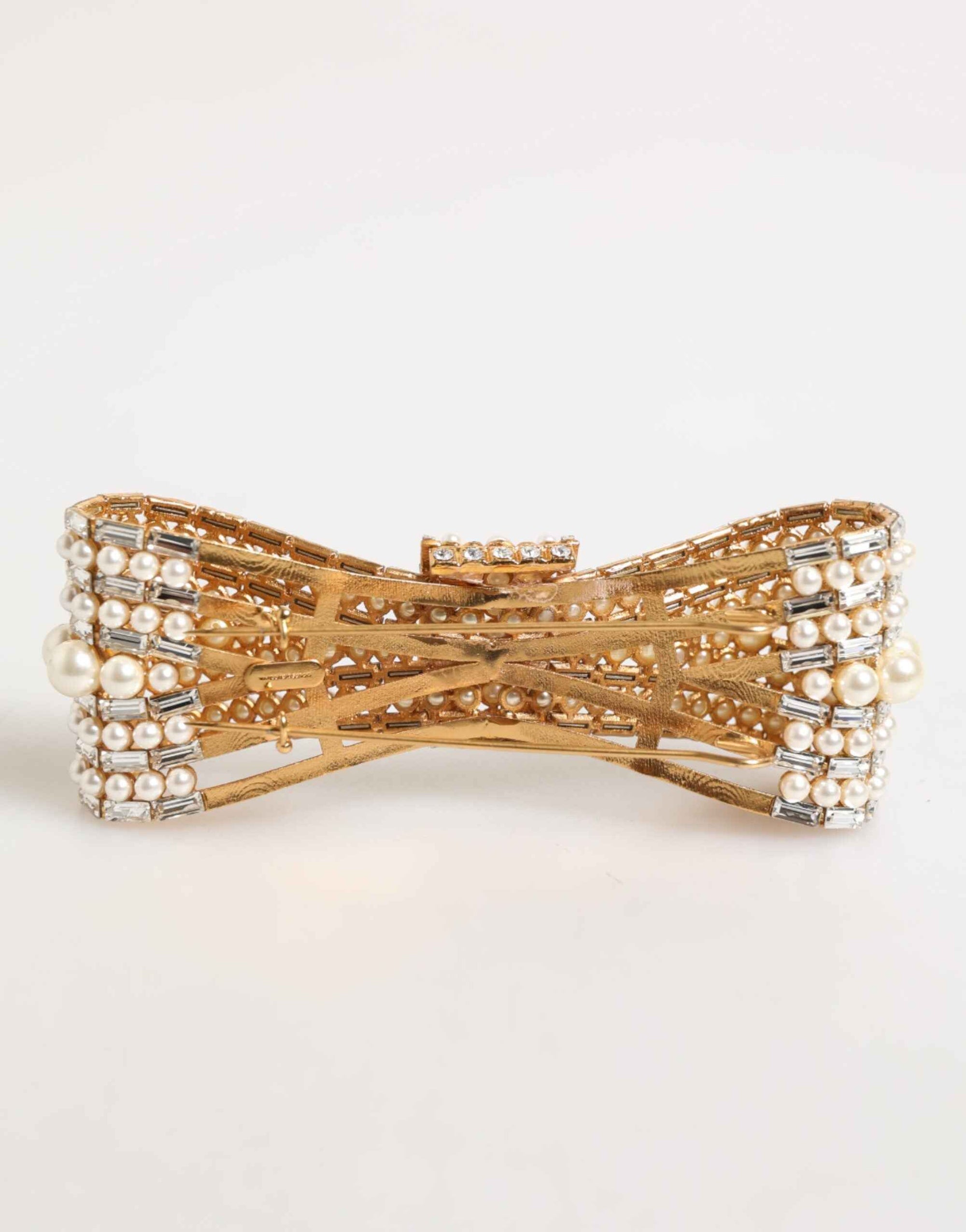Dolce & Gabbana Gold Tone Brass Bow Crystal FauxPearl Embellished Brooch -